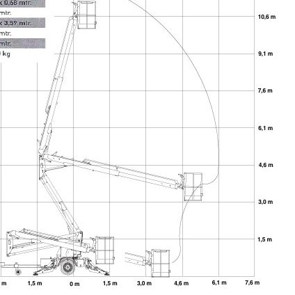 Zie werkdiagram voor het werkbereik van de hoogwerker